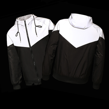 Reflektierende Weste Jacke Lässige Hip-Hop-Windjacke Nacht-Sportmantel mit Kapuze Fluoreszierende Kleidung