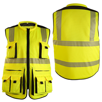 เสื้อกั๊กสะท้อนแสงทำงานมีหลายกระเป๋า